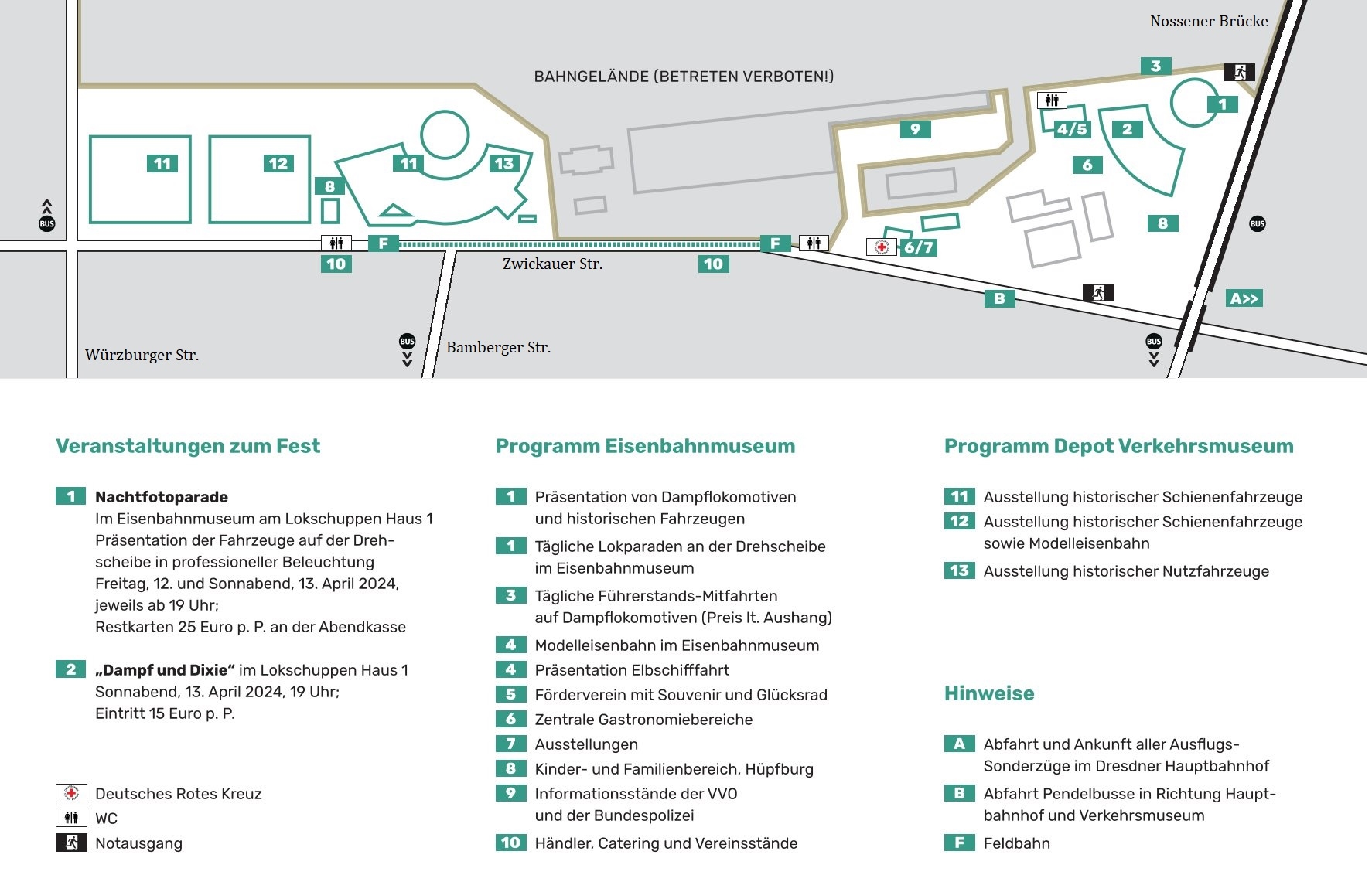 - Fahrpläne zum Bus-Pendelverkehr (historische Busse) zwischen Festgelände, Hauptbahnhof und Verkehrsmuseum